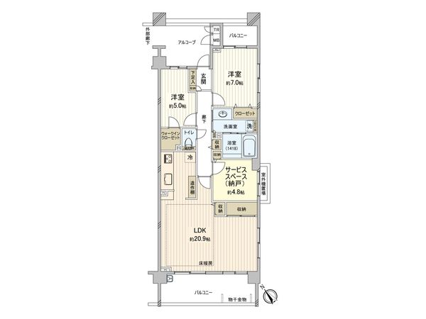 3LDK / 70.8㎡ / 2001年03月築 / 7階