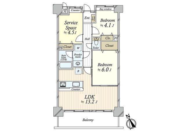 2SLDK / 57.62㎡ / 1991年02月築 / 4階
