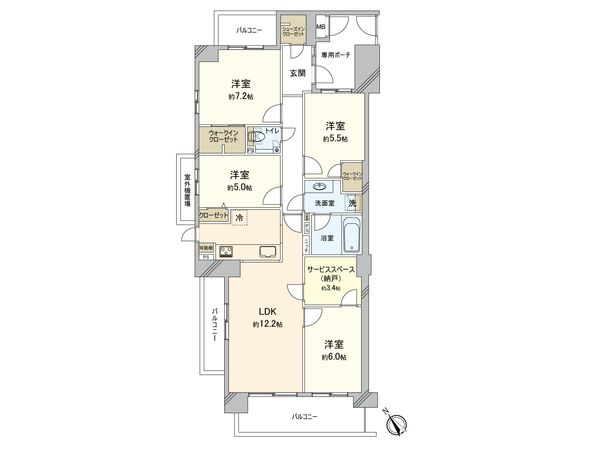 2LDK / 72.24㎡ / 2002年08月築 / 5階