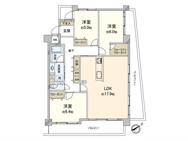 3LDK / 71.9㎡ / 1995年11月築 / 3階
