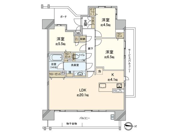 3LDK / 70.8㎡ / 2001年09月築 / 4階
