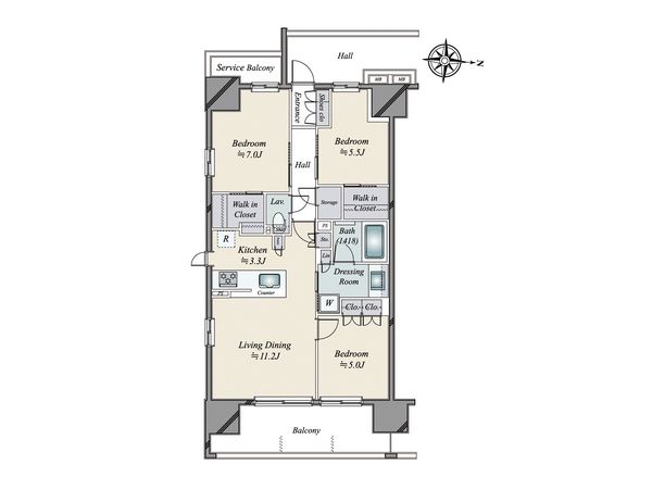 3SLDK / 74.52㎡ / 2020年02月築 / 7階