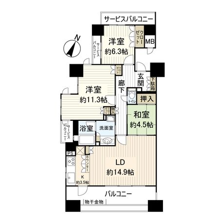 3LDK / 75.09㎡ / 2001年05月築 / 4階