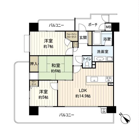 3LDK / 73.85㎡ / 1996年03月築 / 7階