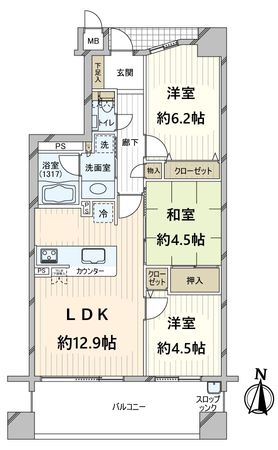 3LDK / 63.38㎡ / 2005年02月築 / 6階