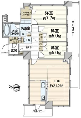 3LDK / 76.81㎡ / 2002年12月築 / 8階
