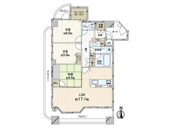3LDK / 71.52㎡ / 1990年03月築 / 5階