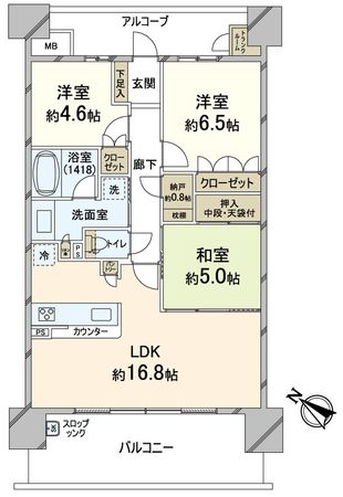 3LDK / 71.2㎡ / 1994年02月築 / 5階