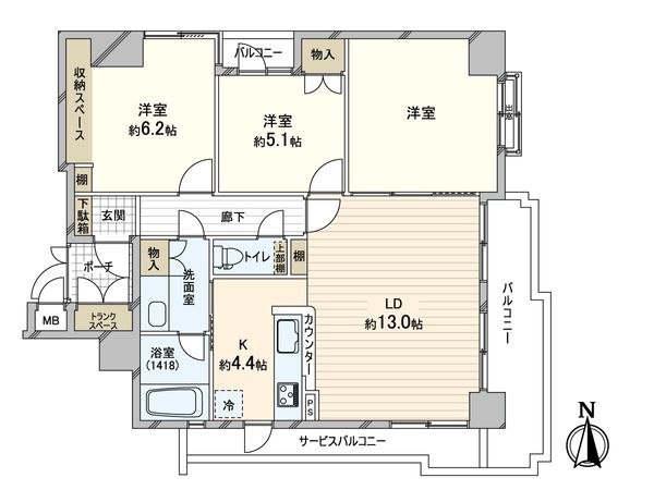 3LDK / 77.96㎡ / 1999年03月築 / 3階