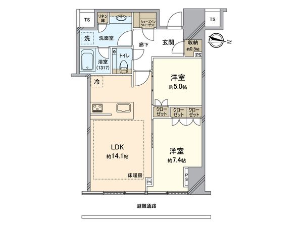 2LDK / 58.37㎡ / 2000年07月築 / 14階