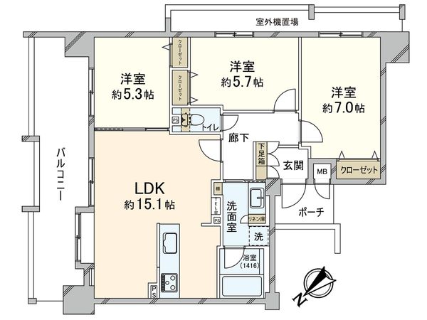 3LDK / 72.01㎡ / 1997年02月築 / 5階