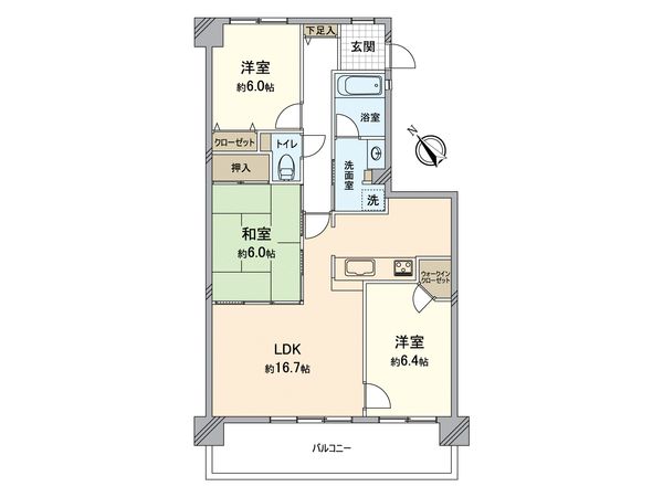 3LDK / 74.78㎡ / 1996年02月築 / 6階