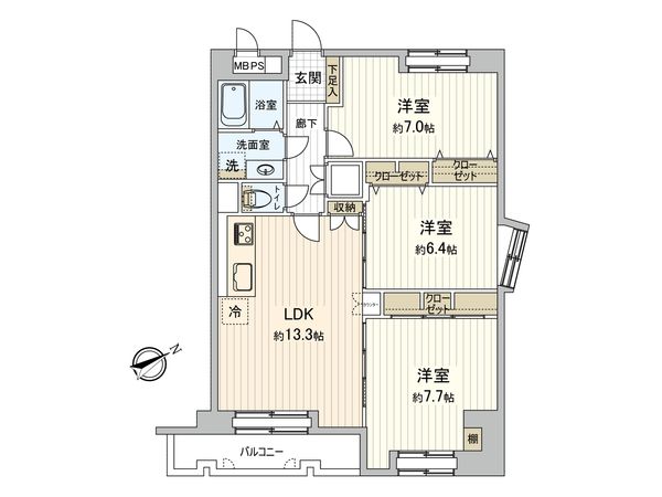 3LDK / 95.38㎡ / 2007年10月築 / 13階