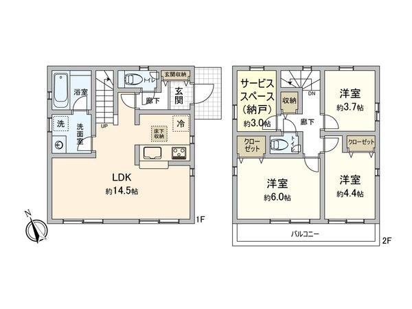 | 間取り | 3SLDK ※S・サービススペースは納戸です |
