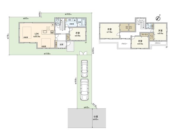 | 土地面積 | 171.27㎡(約51.8坪) ※別途私道約302㎡有 (共有持分 1/11) |