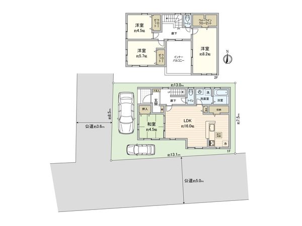| 接道状況 | 南側: 約 5m (公道)、西側: 約 3.6m (公道) |