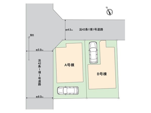| 接道状況 | 北西側: 約 6m (公道)、北東側: 約 4.5m (公道) |