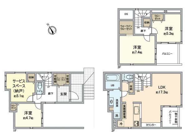 | 間取り | 3SLDK ※S・サービススペースは納戸です |