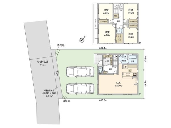 | 土地面積 | 132.26㎡(約40坪) ※別途私道約8.99㎡有 (共有持分 1/3) |
