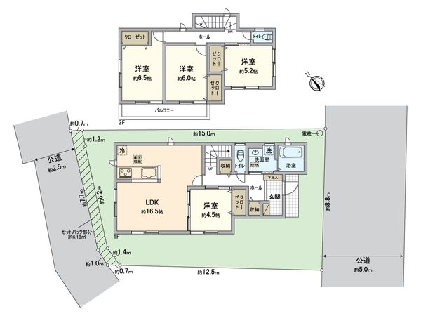| 土地面積 | 121.13㎡(約36.64坪) ※セットバック約6.18㎡を含む |