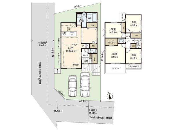 | 接道状況 | 南側: 約 4m (公道)、西側: 約 4m (公道) |