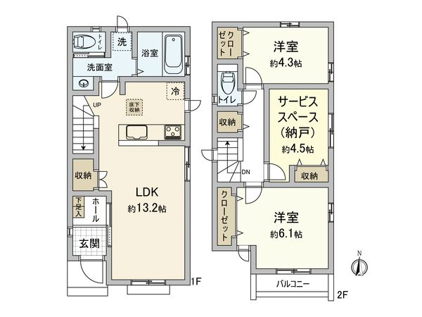 | 間取り | 2SLDK ※S・サービススペースは納戸です |