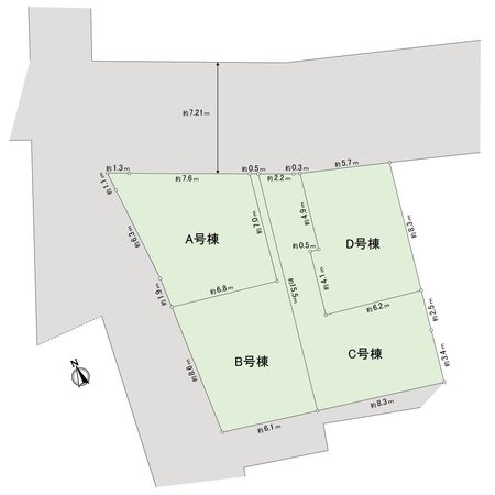 | 接道状況 | 北側: 約 7.2m (公道)、西側: 約 4m (公道) |