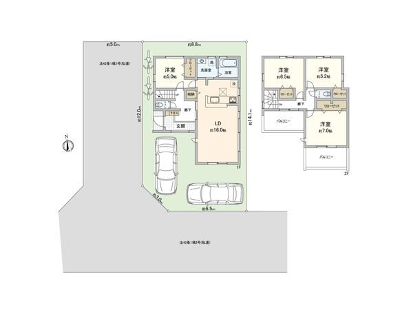 | 土地面積 | 120.26㎡(約36.37坪) ※別途私道約263.78㎡有 (共有持分 1/143) |