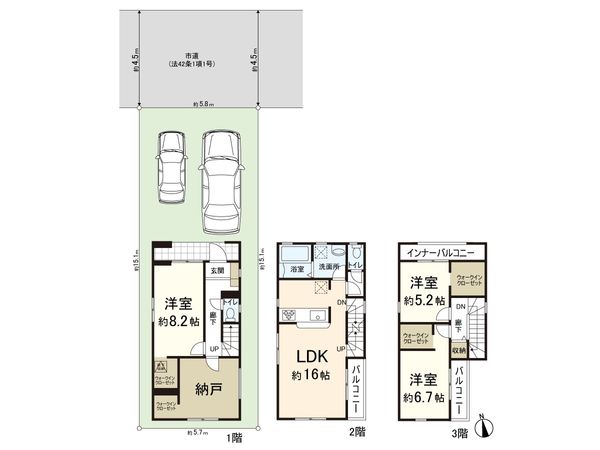| 接道状況 | 北側: 約 4.5m (公道) |