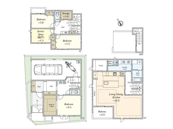 | 間取り | 3SLDK ※S・サービススペースは納戸です |