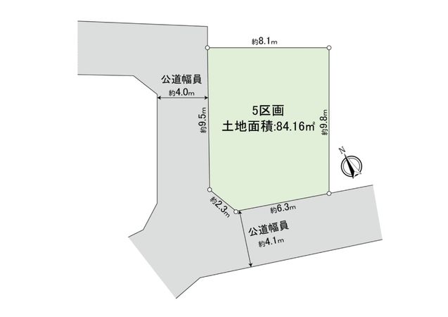 | 接道状況 | 南西側: 約 4.1m (公道)、北西側: 約 4m (公道) |