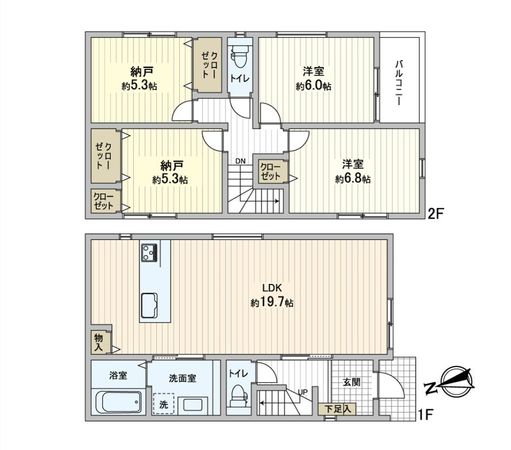 | 間取り | 2LDK+S×2 ※S・サービススペースは納戸です |
