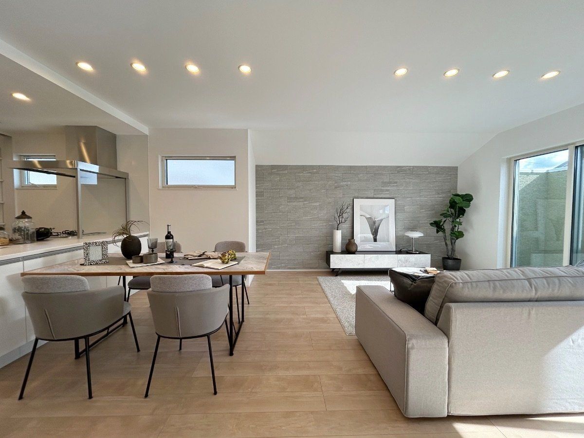 【オススメポイント】 ■並列駐車2台可能(車種による) ■東側は隣地通路の為、開放感のある敷地です ■建物100.07平米の2階建 ■LDK約21帖の広々とした空間となっています ■南向きの為、陽当たり良好です ■広々とした玄関は開放感があります ■玄関やポーチの天井は板張りで高級感のある仕様です 【設備・仕様】 ■省エネ基準適合住宅 ■板張りの天井+キシラデコール塗装(玄関・ポーチ部分) ■外壁はKMEWアートウォール仕上げ+ベルアート ■調湿・脱臭等、機能性とデザイン性を兼ね備えたエコカラット(リビング一部・玄関一部) ■対面式カウンターキッチン採用(食洗機・浄水器・背面収納付き) ■1616サイズの浴室 浴室暖房乾燥機付き ■トイレ2か所設置 ■手洗い2か所設置