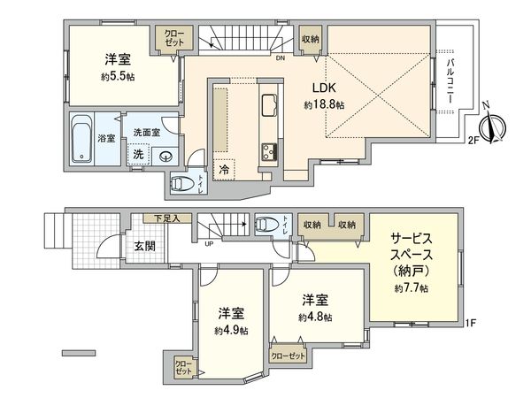 | 間取り | 3SLDK ※S・サービススペースは納戸です |