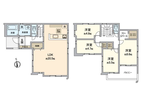 4LDK / 建物105.57㎡ / 土地130.78㎡ / 新築