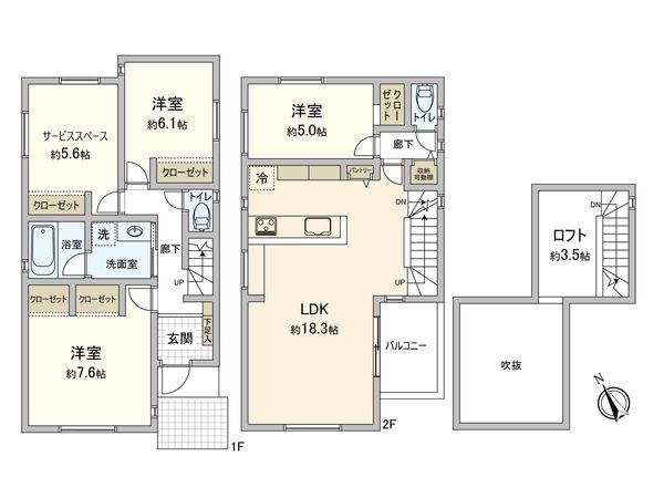 3LDK / 建物89.3㎡ / 土地112.29㎡ / 新築