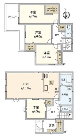 4LDK / 建物105.75㎡ / 土地128.12㎡ / 新築