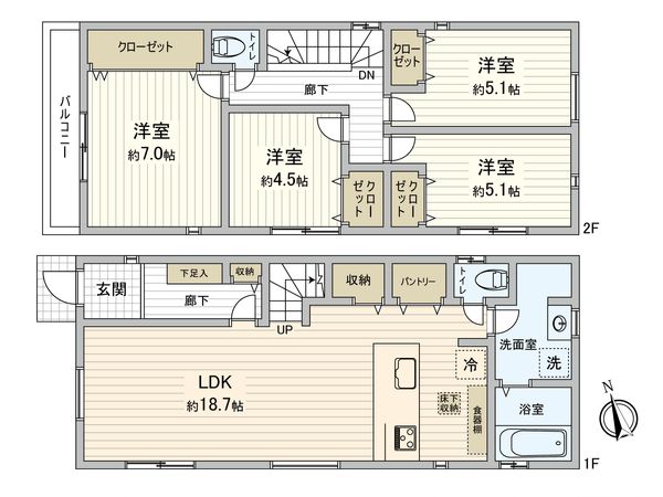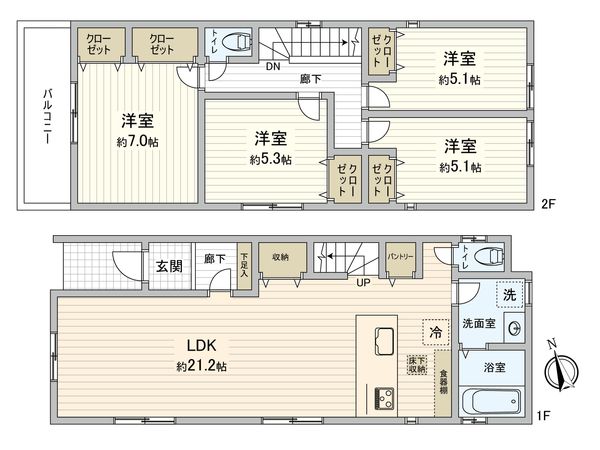 3LDK / 建物84.87㎡ / 土地106.74㎡ / 新築