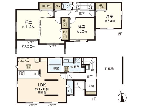 3SLDK / 建物111.56㎡ / 土地107.63㎡ / 新築