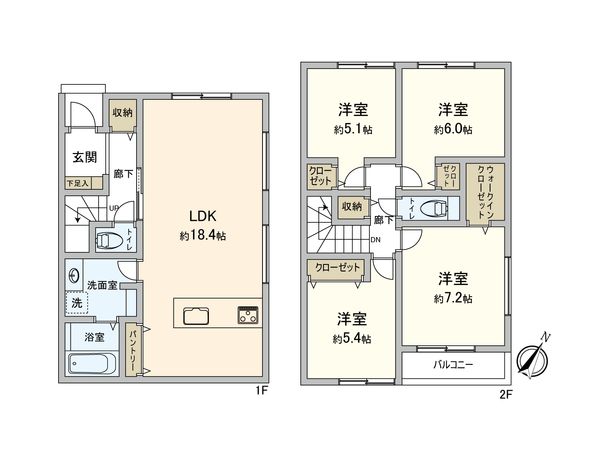 4LDK / 建物108.47㎡ / 土地159.91㎡ / 新築