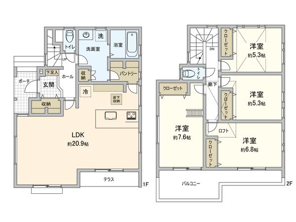 4LDK / 建物106.61㎡ / 土地118.01㎡ / 新築