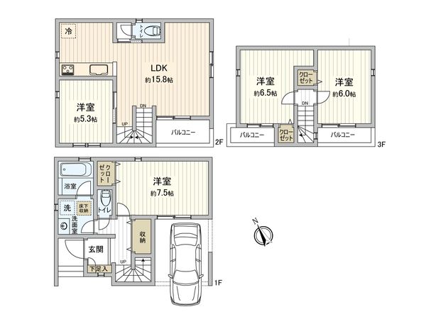 3DK / 建物75.15㎡ / 土地48.01㎡ / 新築