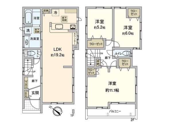 3LDK / 建物98.74㎡ / 土地104.36㎡ / 新築