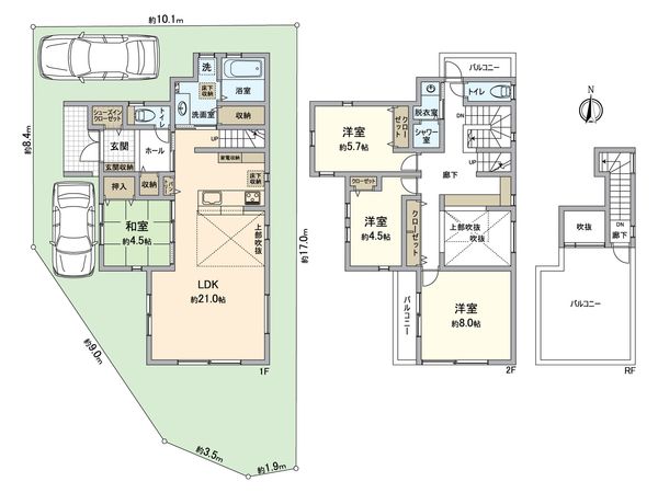 4LDK / 建物108.6㎡ / 土地95.18㎡ / 2017年04月築