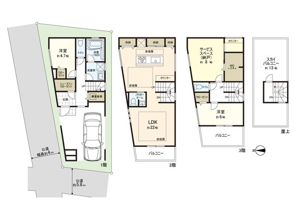 3SLDK / 建物86.67㎡ / 土地86.92㎡ / 新築