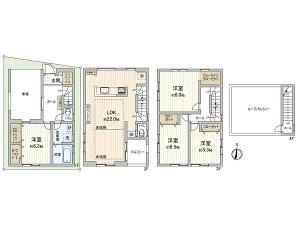 4LDK / 建物107.11㎡ / 土地57.16㎡ / 新築