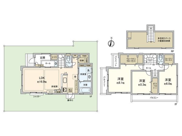 3SLDK / 建物106.2㎡ / 土地81.21㎡ / 新築
