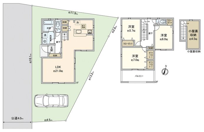 4LDK / 建物104.27㎡ / 土地138.24㎡ / 新築