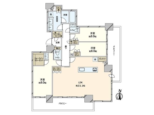 3LDK / 71.3㎡ / 築1年未満 / 23階