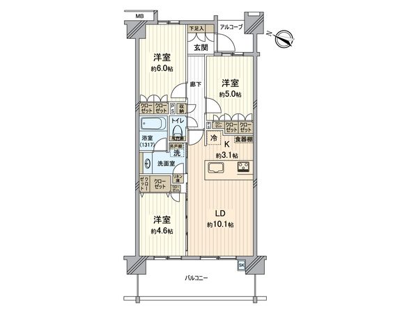 3LDK / 62.34㎡ / 1997年01月築 / 6階